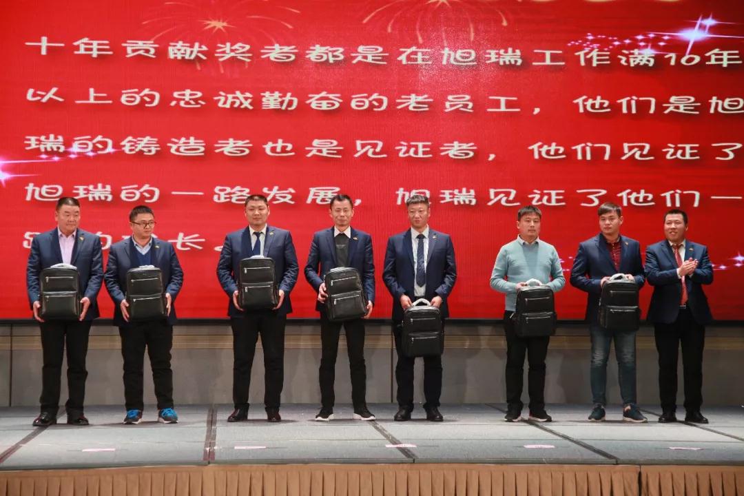 十年風雨兼程,十年努力奮斗,旭瑞今天的成績,離不開旭瑞人十年如一日地努力奮斗,他們把青春韶華獻給了我們旭瑞共同的事業。為表彰這些兢兢業業、勇于奮斗的老員工,集團公司設立了“十年貢獻獎”。十年來,他們與公司攜手同行,見證了公司的成長和蛻變;十年來,他們用忠誠和才智為公司的發展貢獻著自己的一份力量。