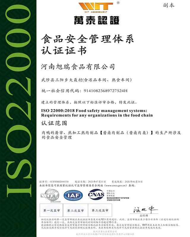 公司累計投資1.5億元,建成現(xiàn)代化屠宰加工生產(chǎn)基地,引進先進成套生產(chǎn)線,達到國內(nèi)領(lǐng)先生產(chǎn)加工水平。具備年屠宰2000萬只肉鴨生產(chǎn)能力。擁有儲存量3000噸的智能化,數(shù)字化冷鏈倉儲.產(chǎn)品分別通過ISO9001質(zhì)量管理體系、ISO22000食品安全管理體系和HACCP管理體系認證,獲得綠色食品認證和出口食品生產(chǎn)企業(yè)備案證明。